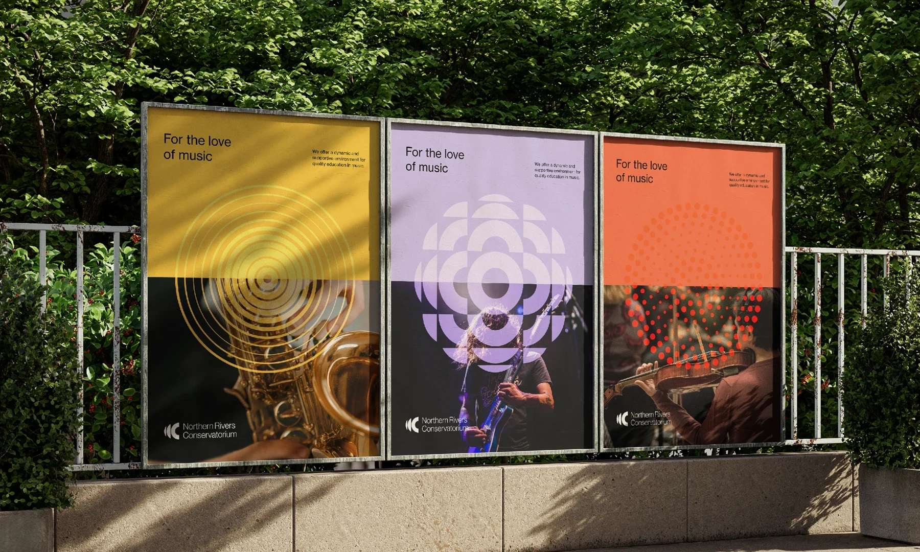 When the Northern Rivers Conservatorium asked us to help inspire a deeper connection with music, we responded with a bold brand refresh that honoured its enduring vision: For the love of music. Inspired by sound, movement, and light, the new identity features a confident logotype, dynamic circular icon, and a vibrant gradient palette drawn from the region’s celebrated “Rainbow” identity. Combined with modern typography, it creates a flexible and cohesive visual language that reflects the Conservatorium’s energy, creativity, and heart.